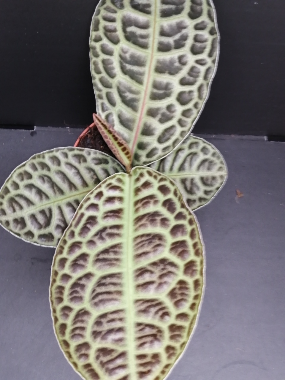 Affascinante con le sue grandi foglie che ricordano i colori del carapace di una tartaruga. Crescita lenta. Pianta epifita o terrestre.