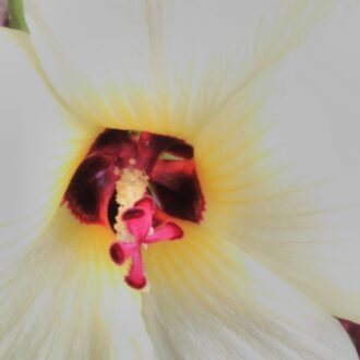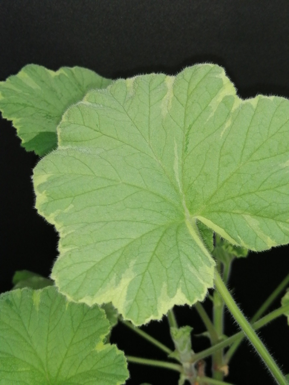 è una pianta a crescita veloce. Grandi foglie trilobate verde chiaro marginate e screziate di giallo crema.