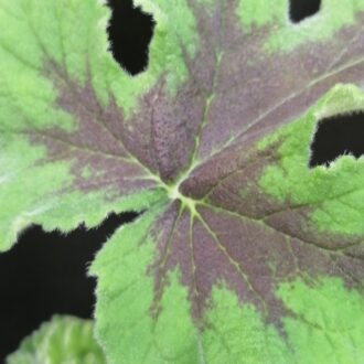 Pelargonium Friesdorf : Geranio zonale miniatura caratterizzato da fogliame con vasta zonatura, molto ornamentale.
