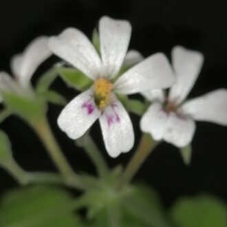 Pelargonium Friesdorf : Geranio zonale miniatura caratterizzato da fogliame con vasta zonatura, molto ornamentale.