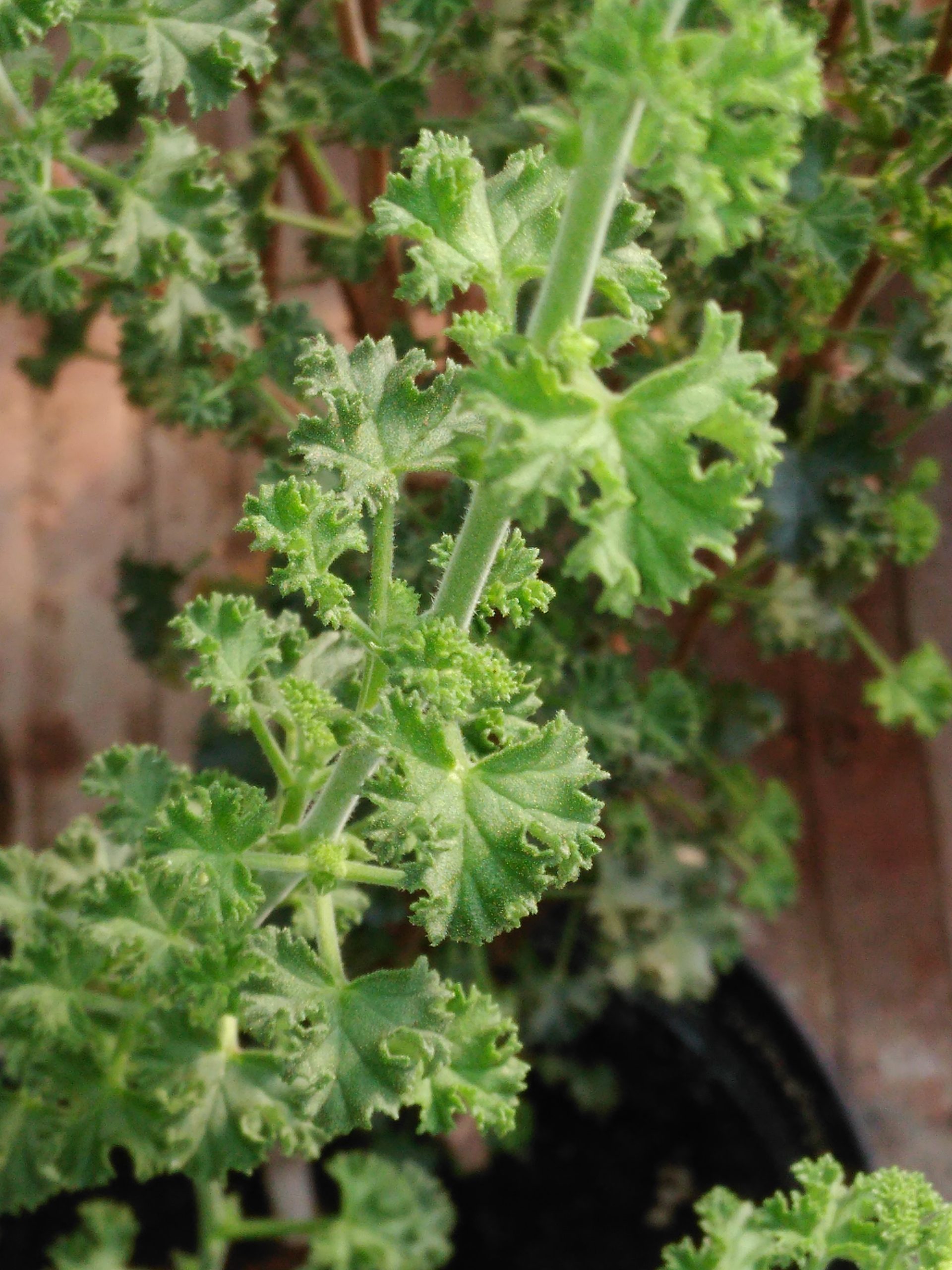 il Pelargonium Mabel Grey è una cultivar a foglie palmate a cinque lobi, dalla superficie ruvida, intensamente profumate di limone.