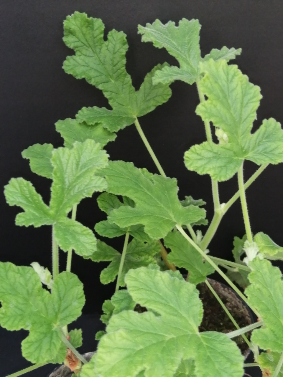 Forse la specie più famosa tra i gerani odorosi, per le sue grandi foglie verde grigio, soffici e coperte da sottile peluria bianca. Il profumo è intenso di menta.