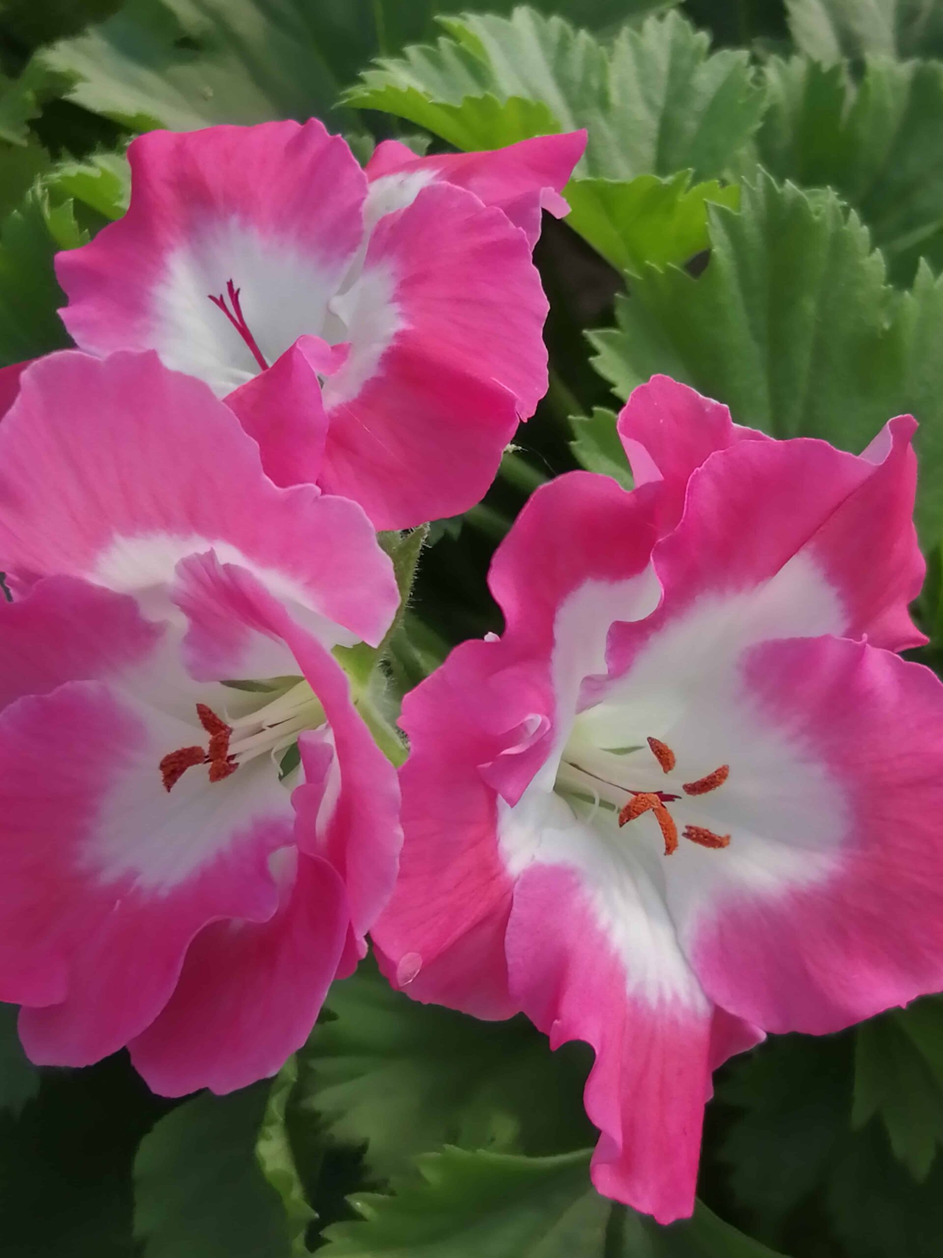 Forma un denso e compatto cespuglio che si ricopre di fiori grandi, aperti, raccolti in piccoli mazzetti, rosa intenso con centro bianco.