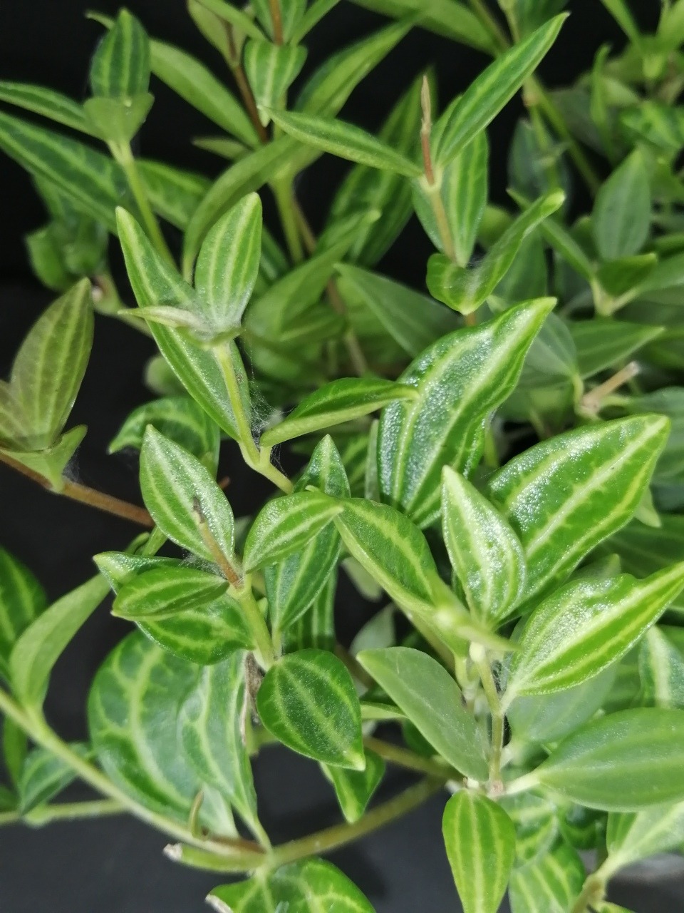 Pianta a portamento ricadente originaria del Brasile. Ha foglie medio piccole verde scuro, lucide, con rigature più chiare e fusti rossicci, sottili penduli.