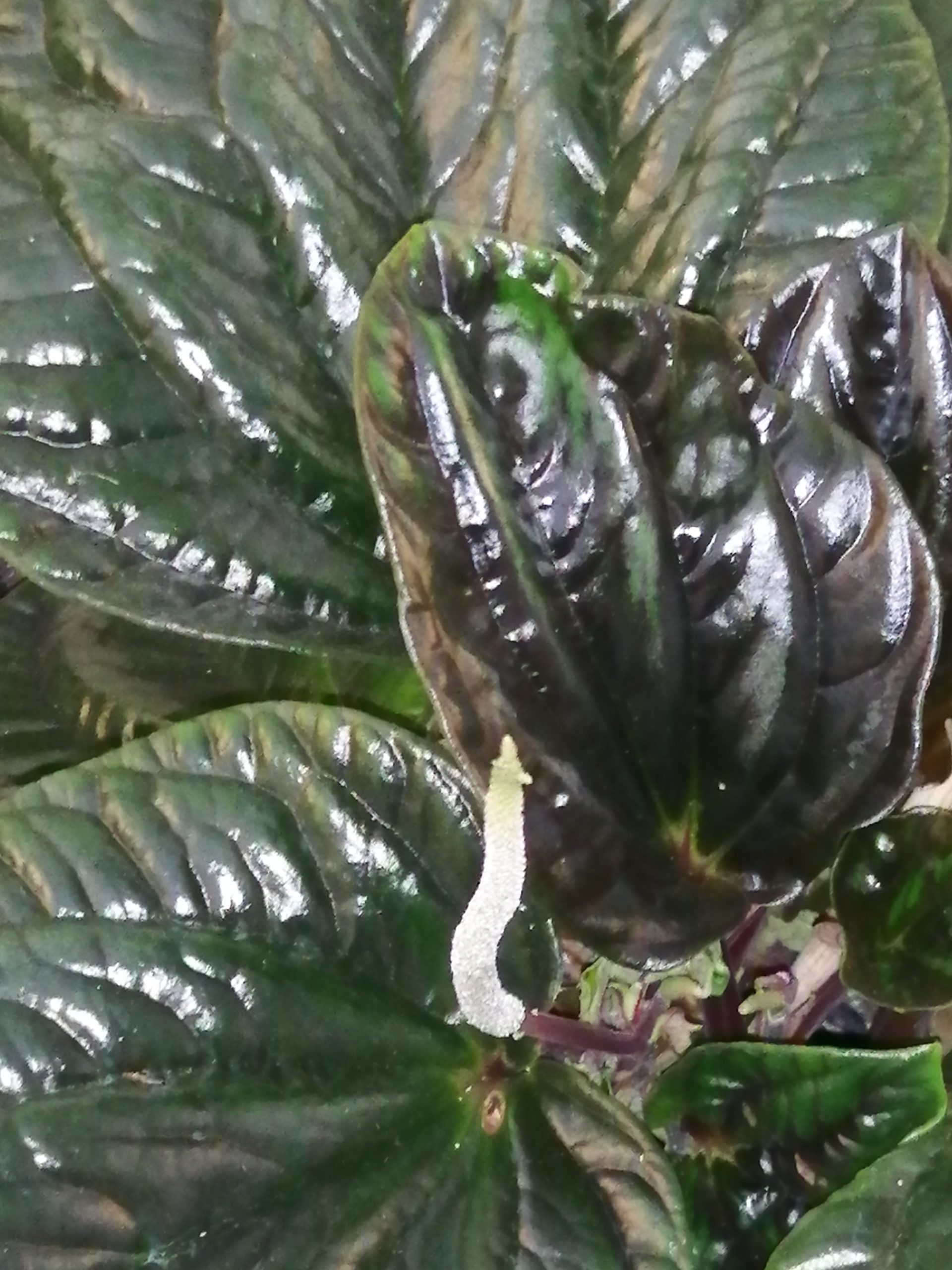 Perenne eretta, rigida, dalle foglie obovate, verde intenso, carnose, lucide, con margini arrossati. Fiori verde chiaro in lunghe spighe.