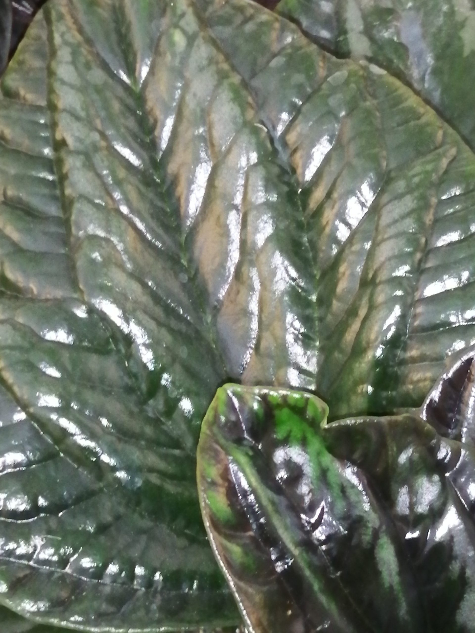 Nuova introduzione veramente spettacolare. Foglie grandissime,  lunghe anche 20cm, verde scuro quasi nero, lucide.