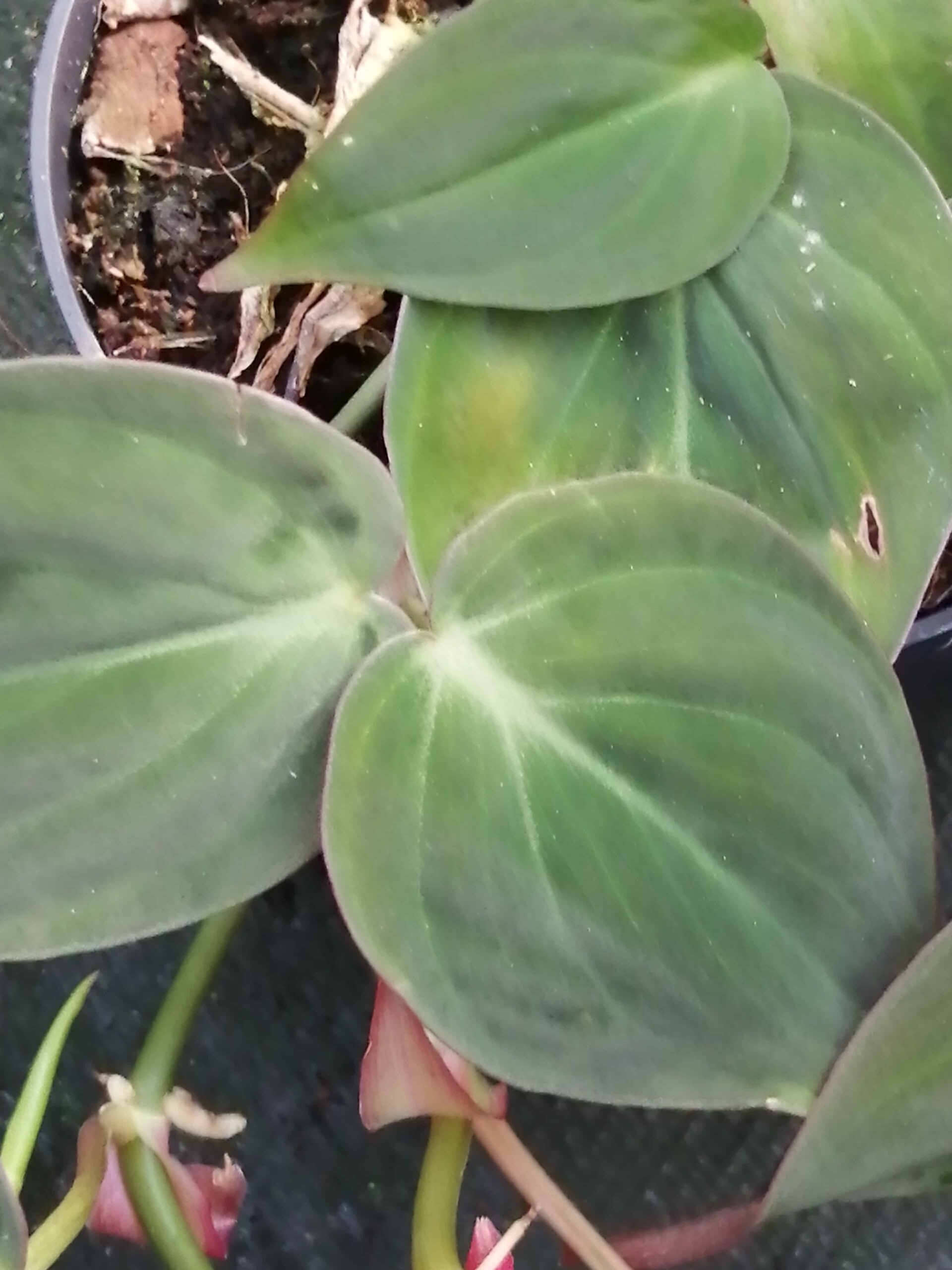 Philodendron micans Questa specie è adatta a chi ha spazi piccoli in casa. Originaria dei Caraibe e del Messico ha bellissime foglie a cuore vellutate che a seconda della luce che ricevono vanno dal verde al porpora scuro con riflessi rosati.