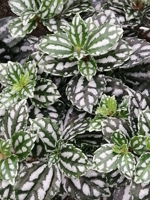 Le sue foglie sono medio piccole, verde scuro con macchie argentee diffuse che le hanno dato il soprannome di Pianta d’alluminio.