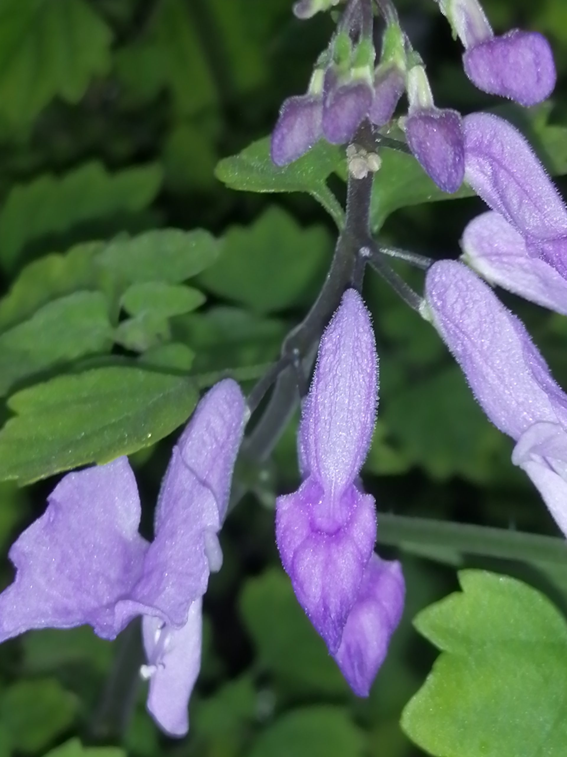 Pianta erbacea, semi succulenta a base legnosa. Ha piccole foglie verde intenso a margini dentati e produce graziose spighe di fiori lavanda porpora.