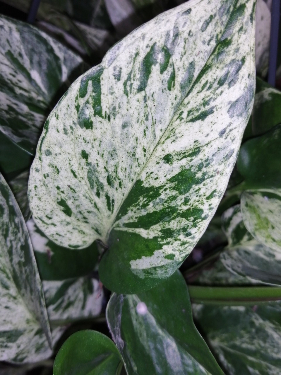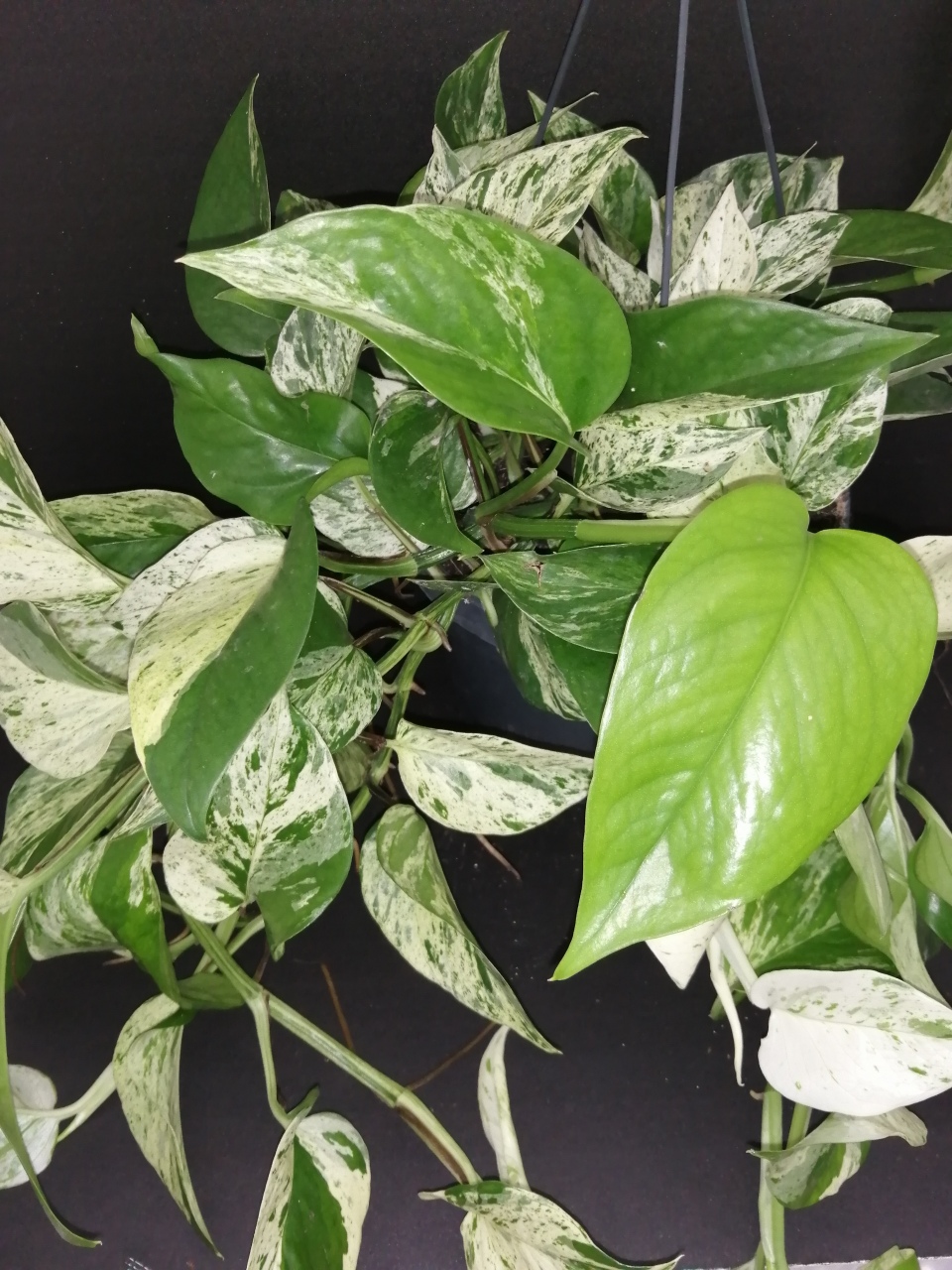 Una variazione più sofisticata del classico Pothos aurea, con le foglie screziate di bianco invece che di giallo.