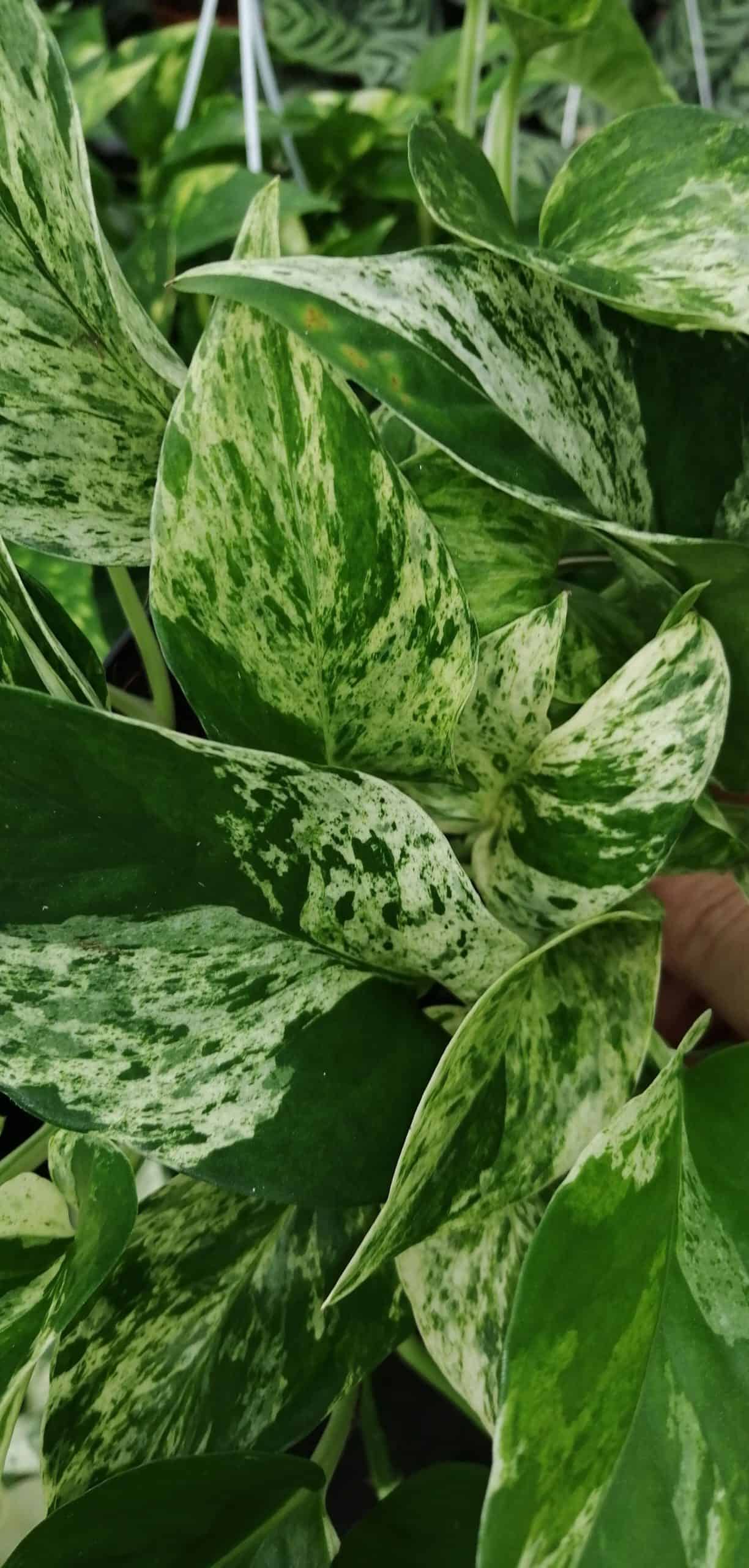 Una variazione più sofisticata del classico Potos aurea, con le foglie screziate di bianco invece che di giallo.