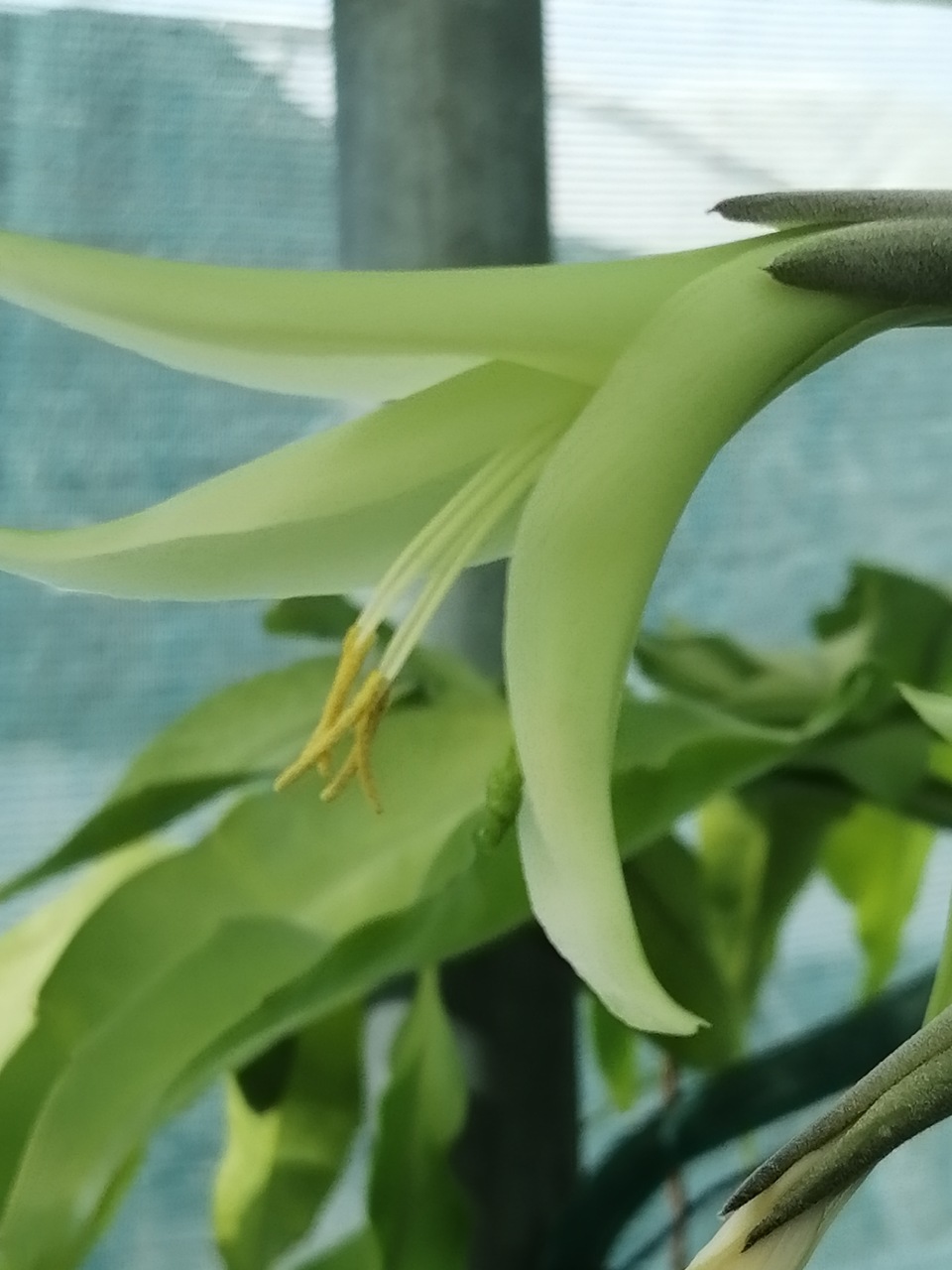 Puya mirabilis. E’ una bromeliacea molto particolare e resistente, semirustica che in estate produce spighe di fiori di un colore particolarissimo che viene definito verde azzurro.