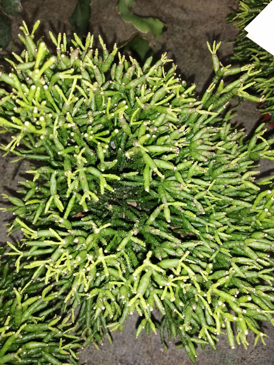 Pianta epifita a rapida crescita. Dai fusti penduli di schiudono piccoli fiori bianchi seguiti da infruttescenze.