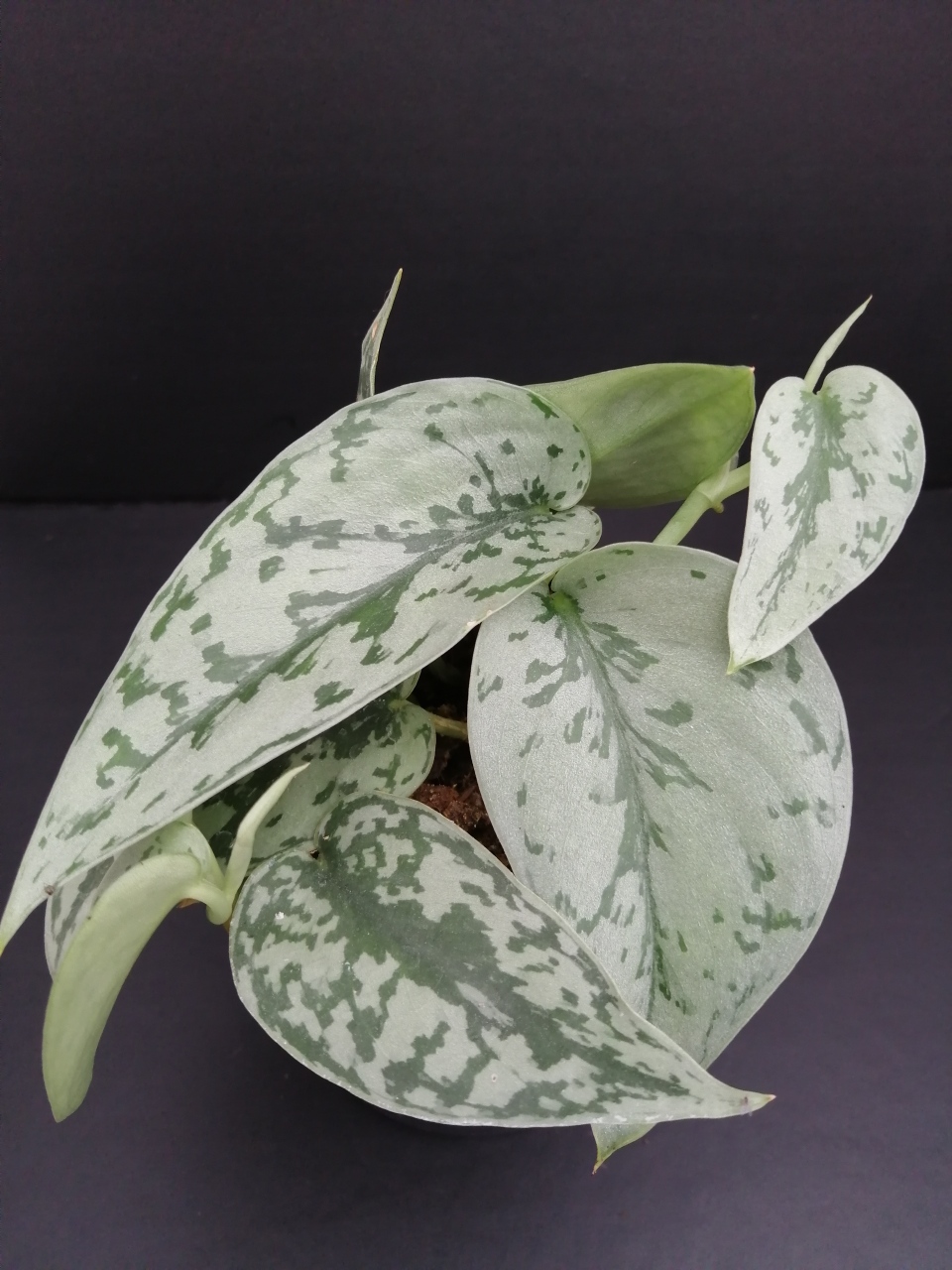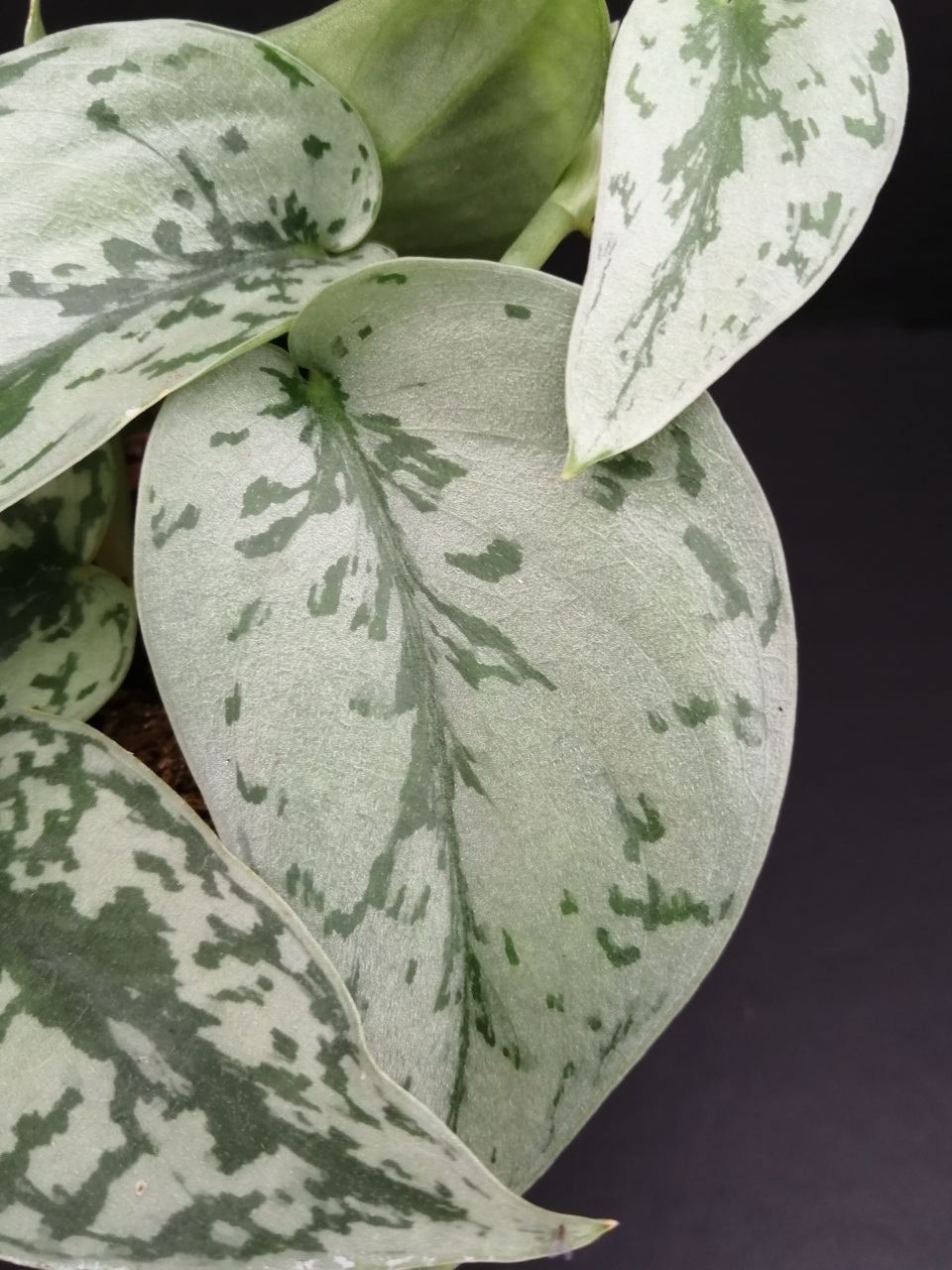 Scindapsus Silver Lady è una nuova e rara selezione molto interessante per le sue foglie che rimangono di media grandezza, molto graziose, caratterizzate dalla maculatura verde grigio su verde e di forma piuttosto allungata.