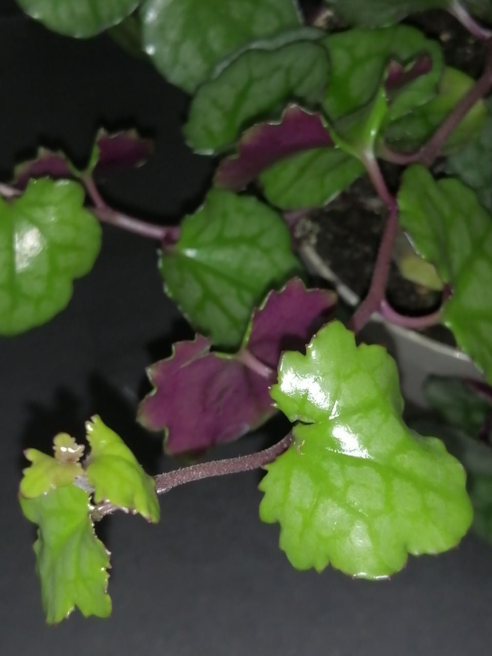 Molto ornamentale per le sue foglie verde grigio, piccole, carnose, con retro della pagina viola scuro. Annaffiare quando il terriccio si sta asciugando.