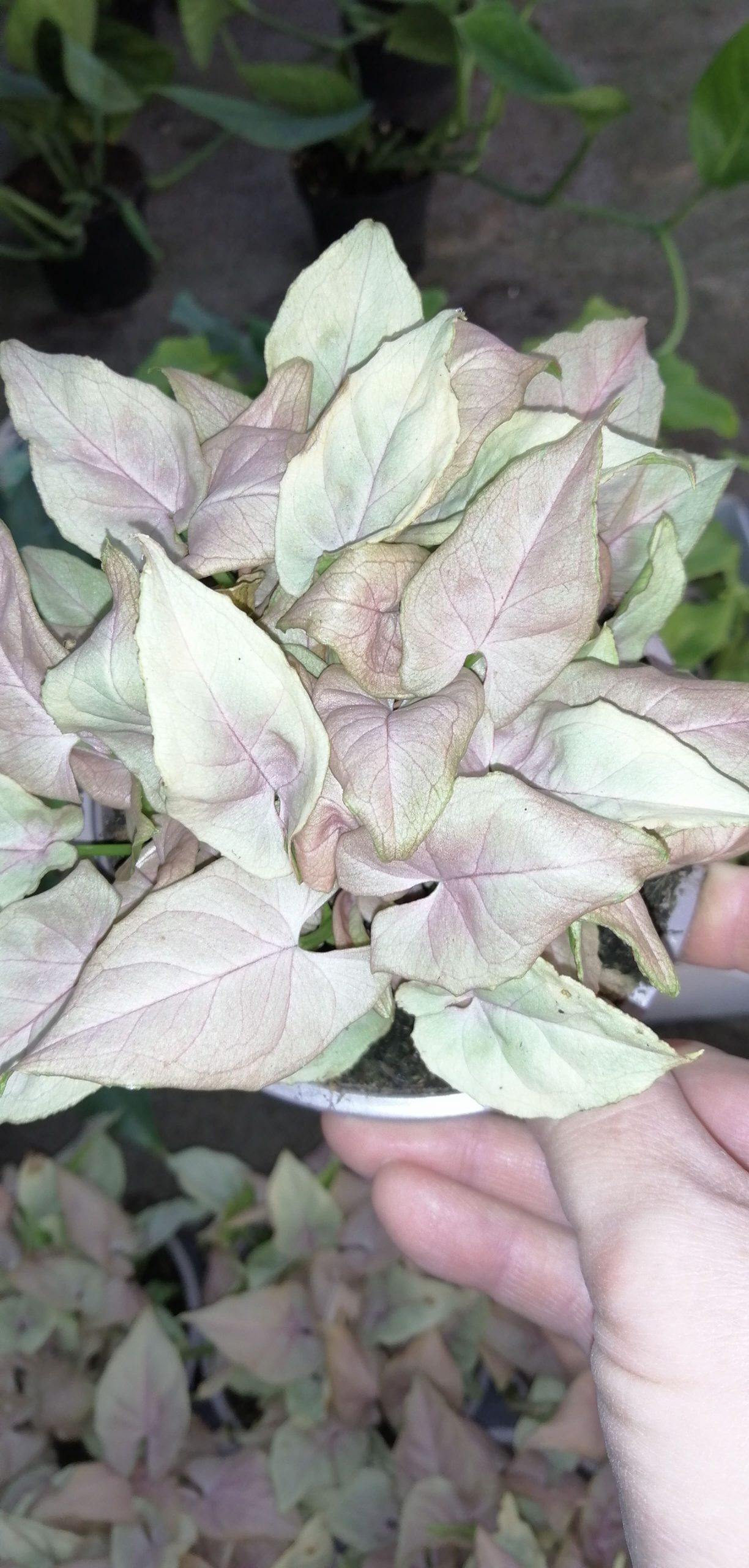 Questo Syngonium podophyllum Neon Robusta è speciale, perché è nanissimo, compatto e le sue foglie sono piccole, circa 4-5 cm.