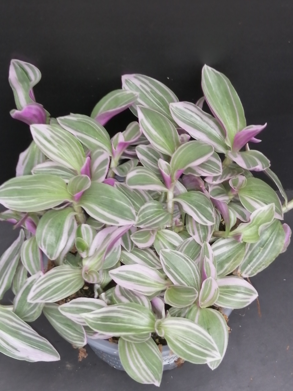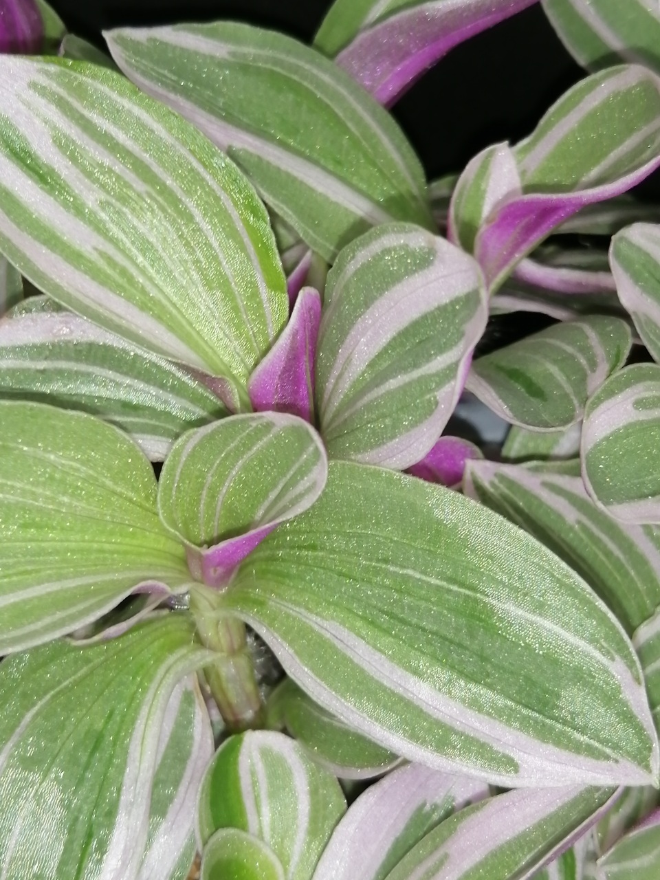 Questa Tradescantia è stata selezionata  per le sue striature bianche e rosa delicato e foglie medio piccole. I fiori sono bianco rosati.
