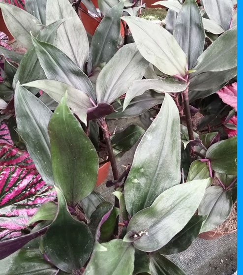 la Tradescantia Roxxo è una nuovissima introduzione. Il fogliame è grande, allungato, porpora scuro e lucido; il portamento è verticale, compatto.
