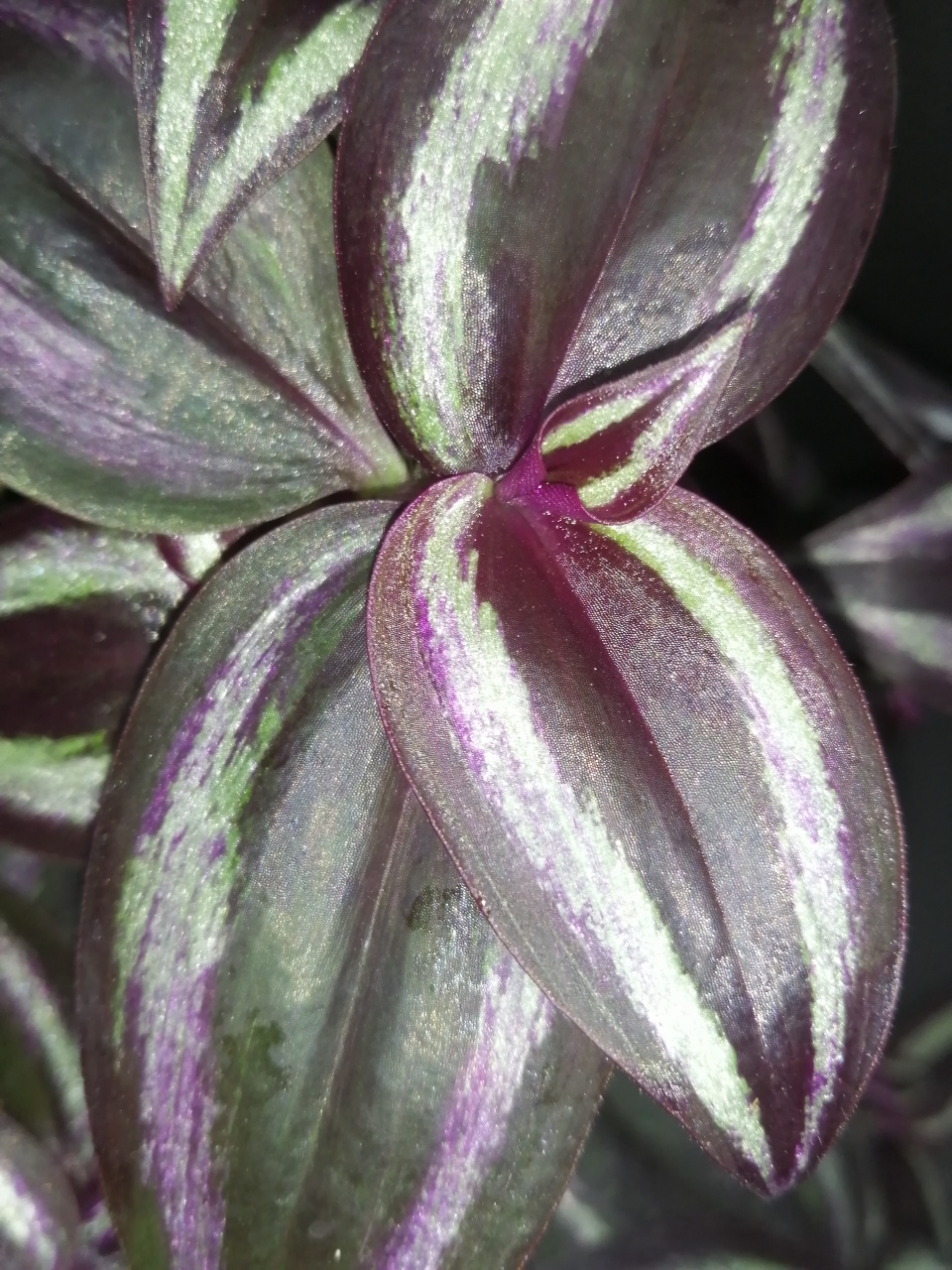 Una nuova selezione di Tradescantia, dalle foglie di un porpora rosato, con sfumature argentee e metalliche, di grande fascini.